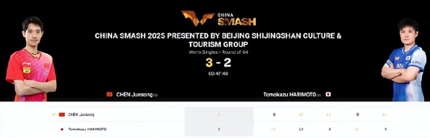 可比赛的五局对抗中,他没有丝毫畏惧,在比分落后时敢于变线进攻,连续使用反手生胶撕拉制造旋转变化,硬是让张本陷入手忙脚乱。